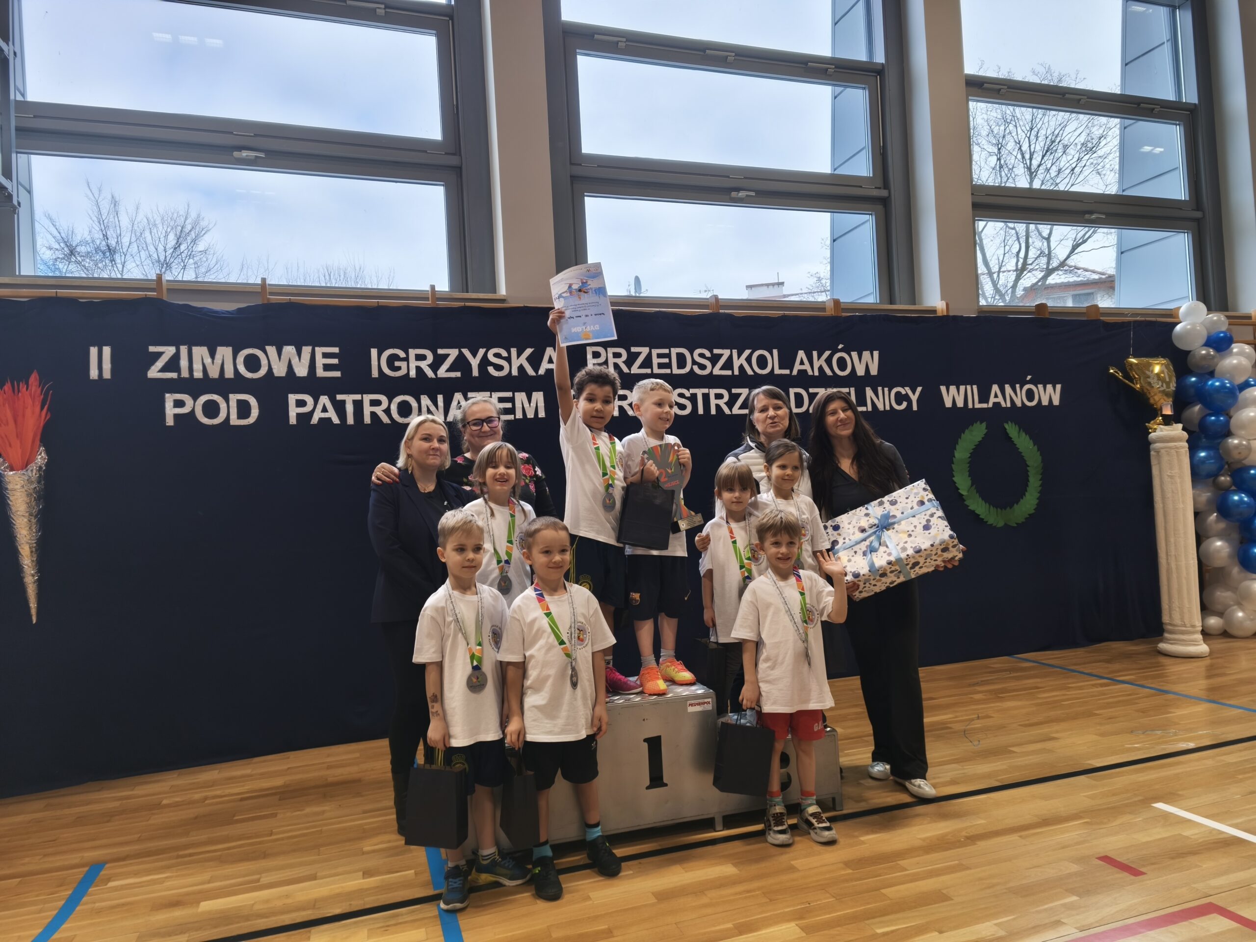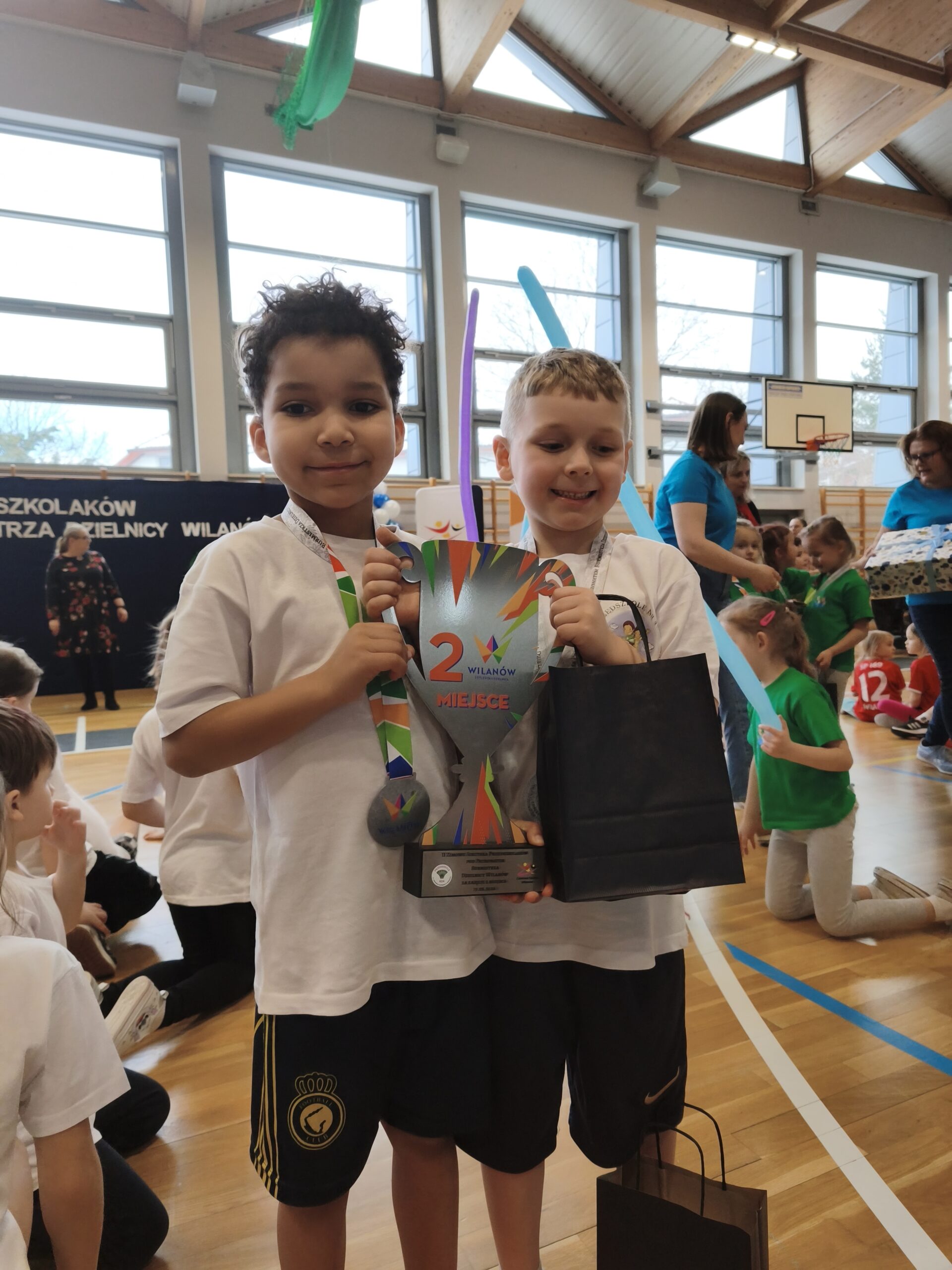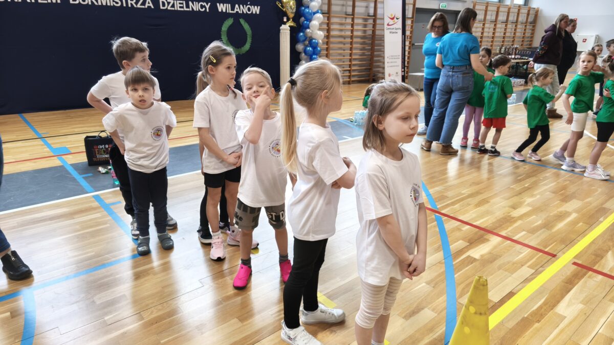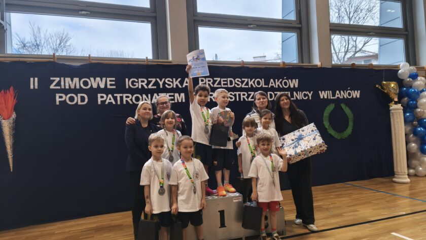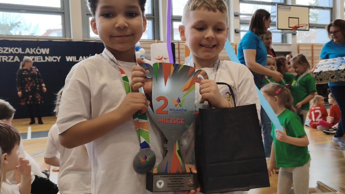 Nasi dzielni zawodnicy rywalizowali z innymi przedszkolami dzielnicy Wilanów w 5 konkurencjach wymagających od nich sprytu, szybkości i dokładności. Jesteśmy bardzo dumni z naszych zawodników oraz kibiców obu drużyn, którzy głośno dopingowali swoje koleżanki i kolegów. Mamy się czym pochwalić!